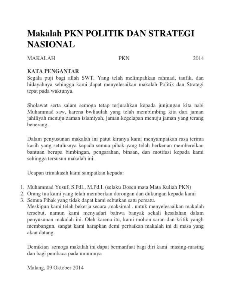 Makalah Pkn Politik Dan Strategi Nasional