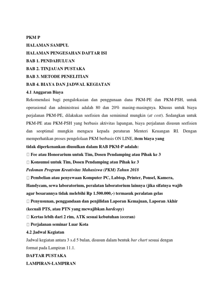 Contoh Proposal Pkm Karsa Cipta Didanai Dikti 2018
