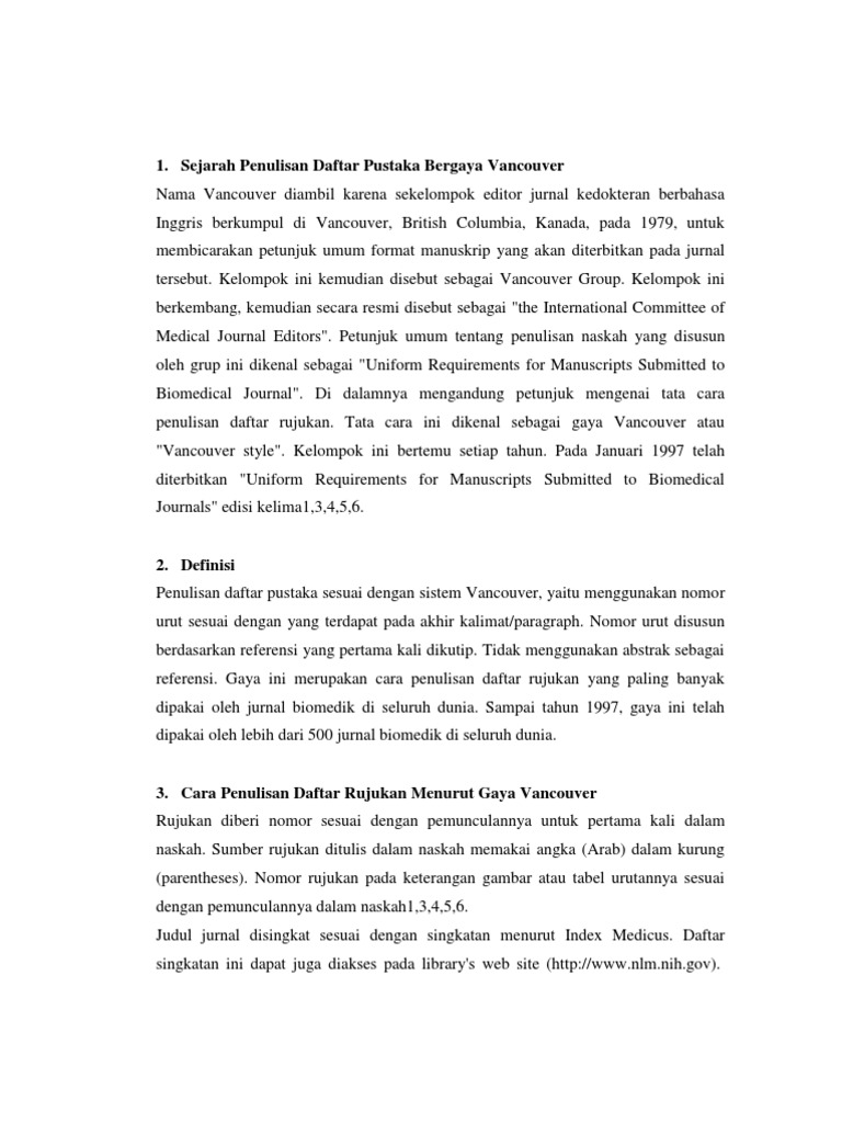 Sejarah Penulisan Daftar Pustaka Bergaya Vancouver Docx Document