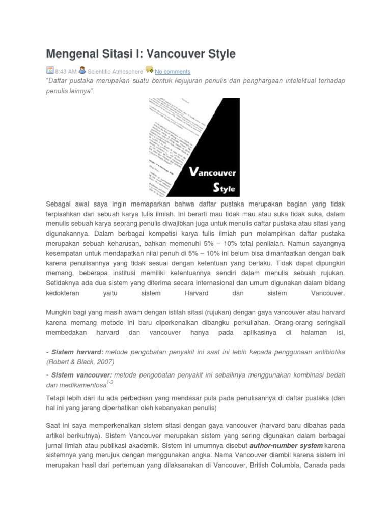 Scientific Atmosphere 6 Mengenal Sitasi I Vancouver Style
