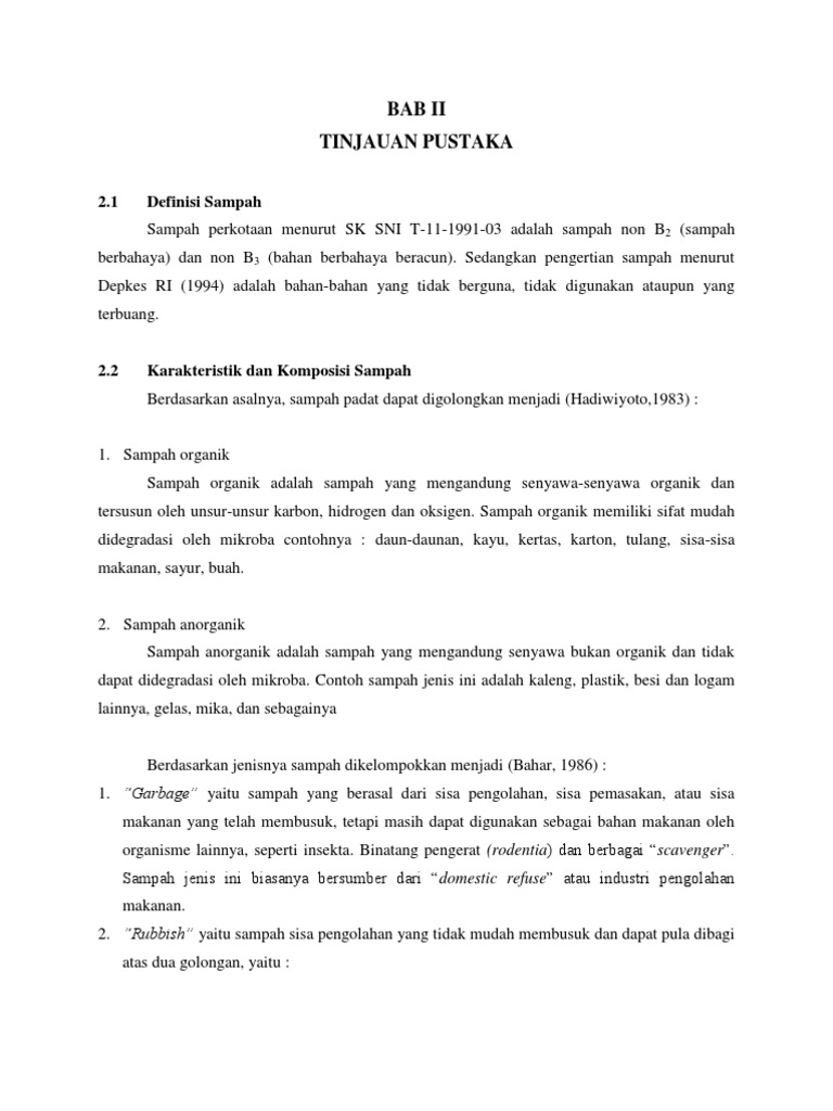 Pdf Bab Ii Tinjauan Pustaka 2 1 Pengertian Sampah Harmia Mia
