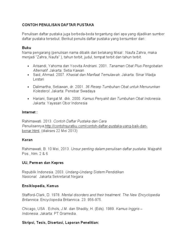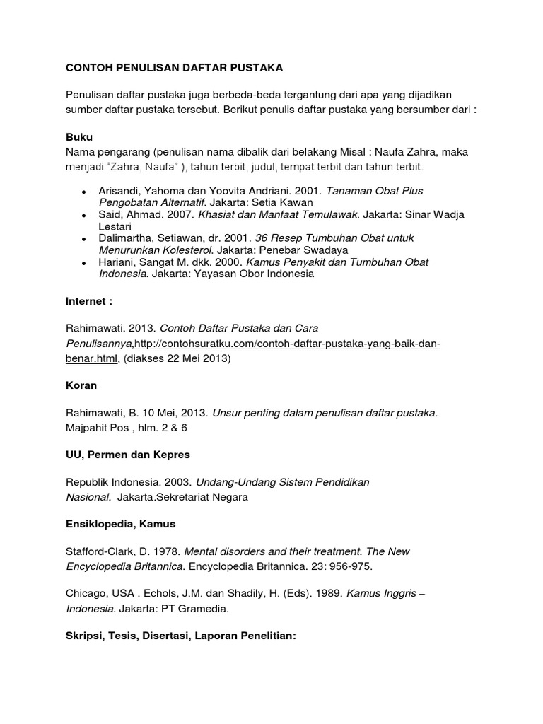 Contoh Daftar Pustaka Dan Cara Menulis Daftar Pustaka Contoh Surat