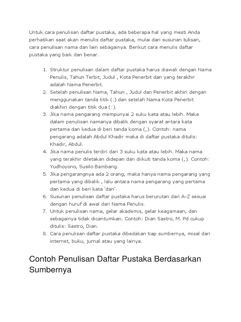 Daftar Pustaka Cara Penulisan Dan Contoh Daftar Pustaka Yg Benar
