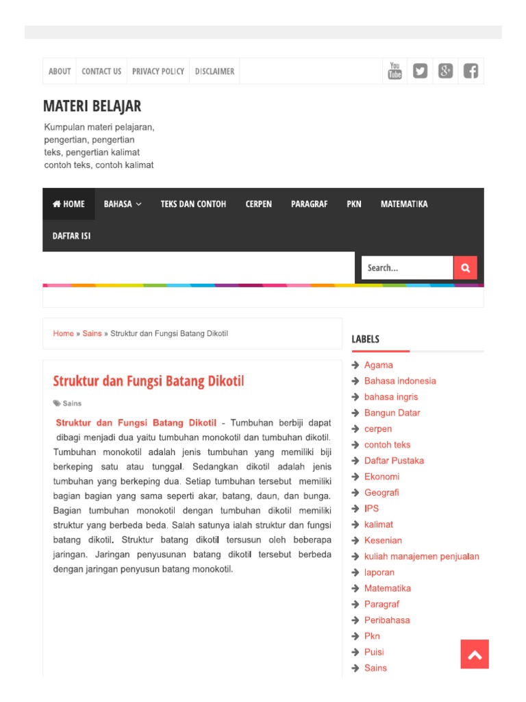 Struktur Dan Fungsi Batang Dikotil Materi Belajar