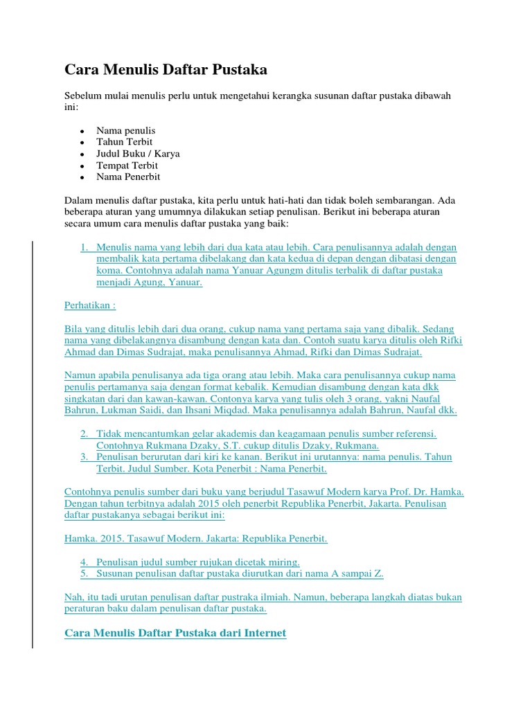 Cara Menulis Daftar Pustaka Contoh Lengkap Dari Internet Jurnal