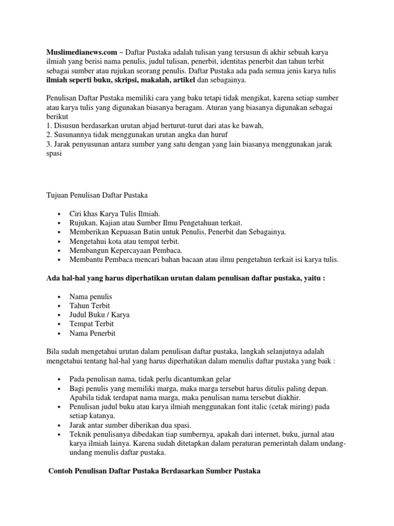 Cara Penulisan Daftar Pustaka Lengkap Dan Contoh Portal Ilmu Com