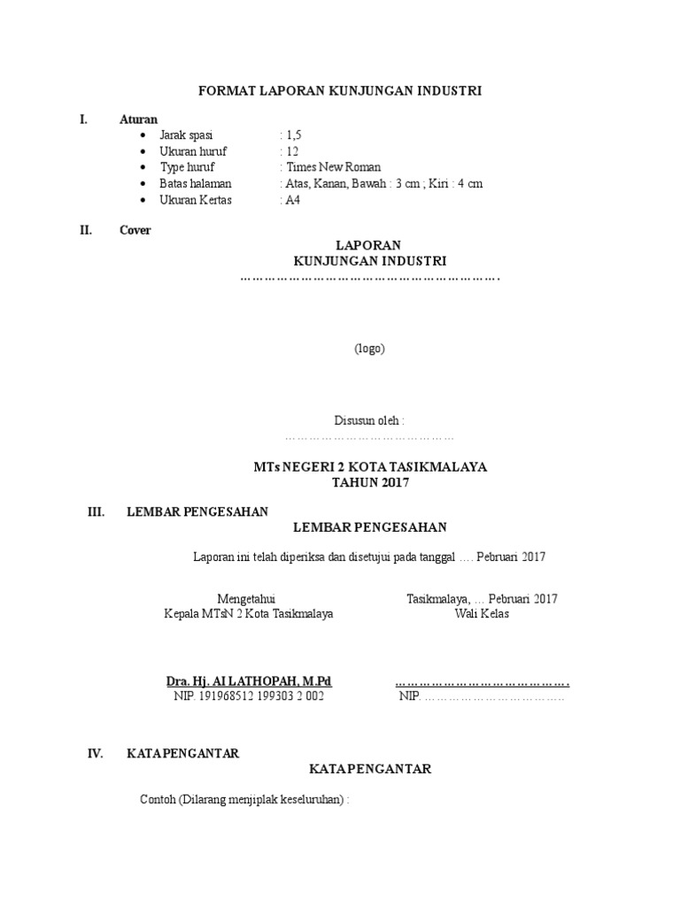 Contoh Penulisan Laporan Kunjungan Industri Pdf