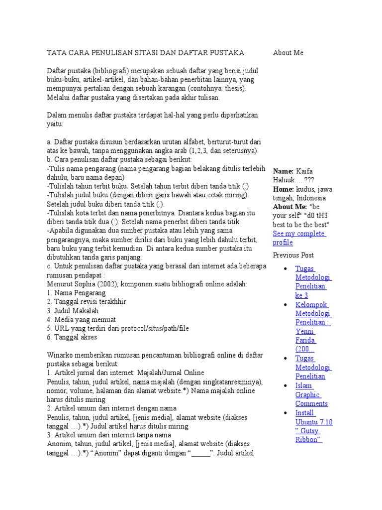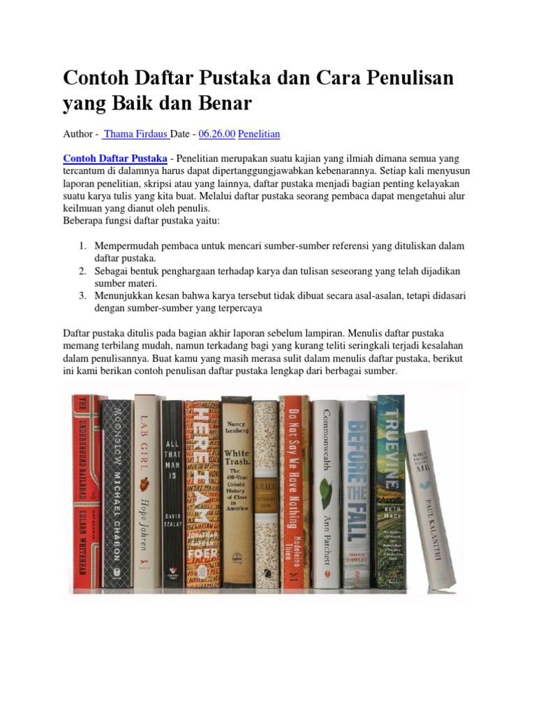 Contoh Daftar Pustaka Dan Cara Penulisan Yang Baik Dan Benar