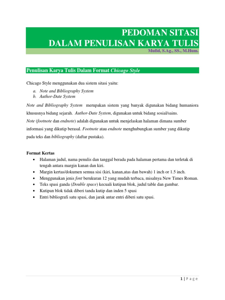 Doc Chicago Style Citation Panduan Cepat Fiki Aprialdi Rahman