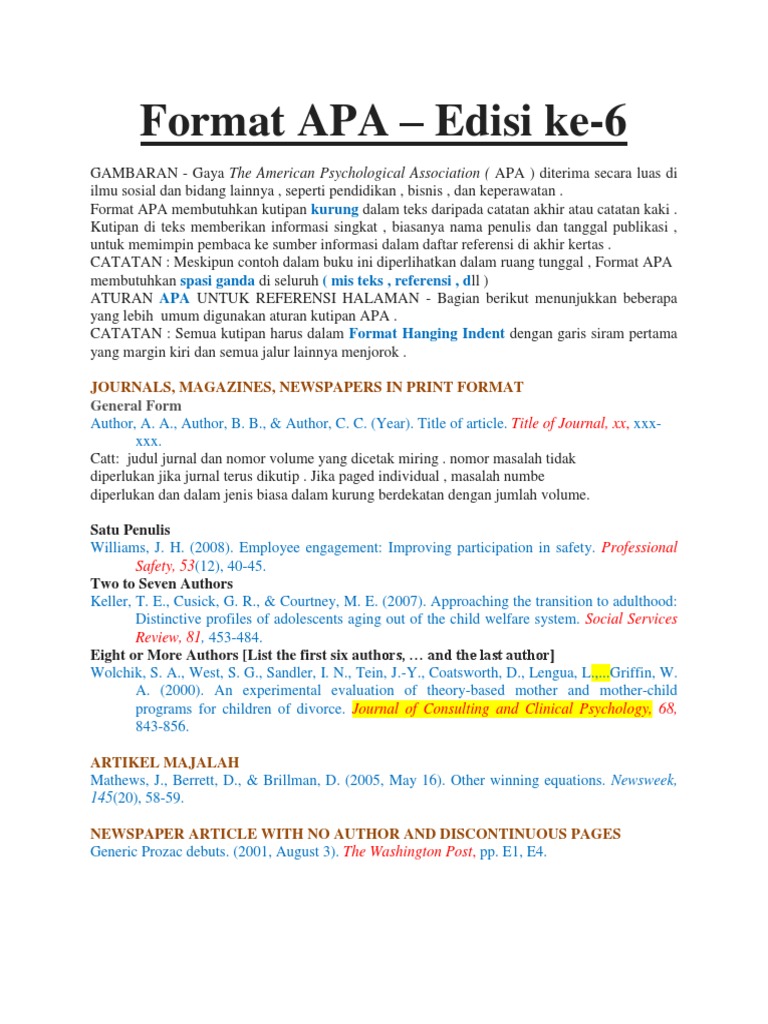 Penulisan Daftar Pustaka Berdasarkan Harvard Format Apa Docx