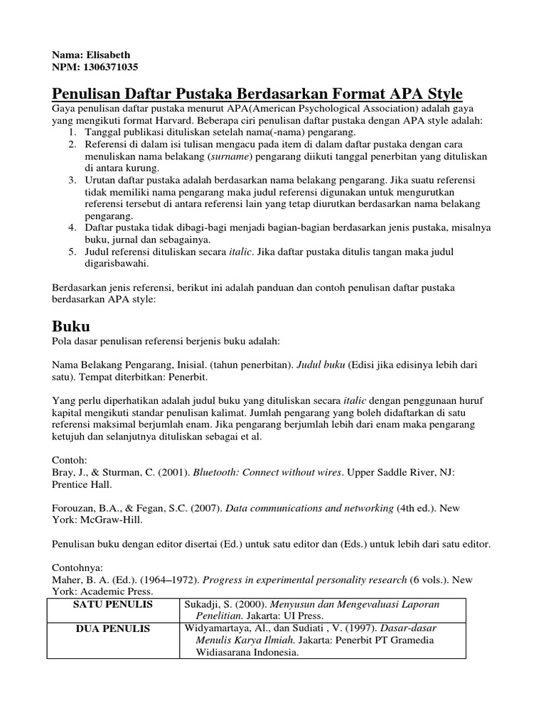 Penulisan Daftar Pustaka Berdasarkan Harvard Format Apa Docx