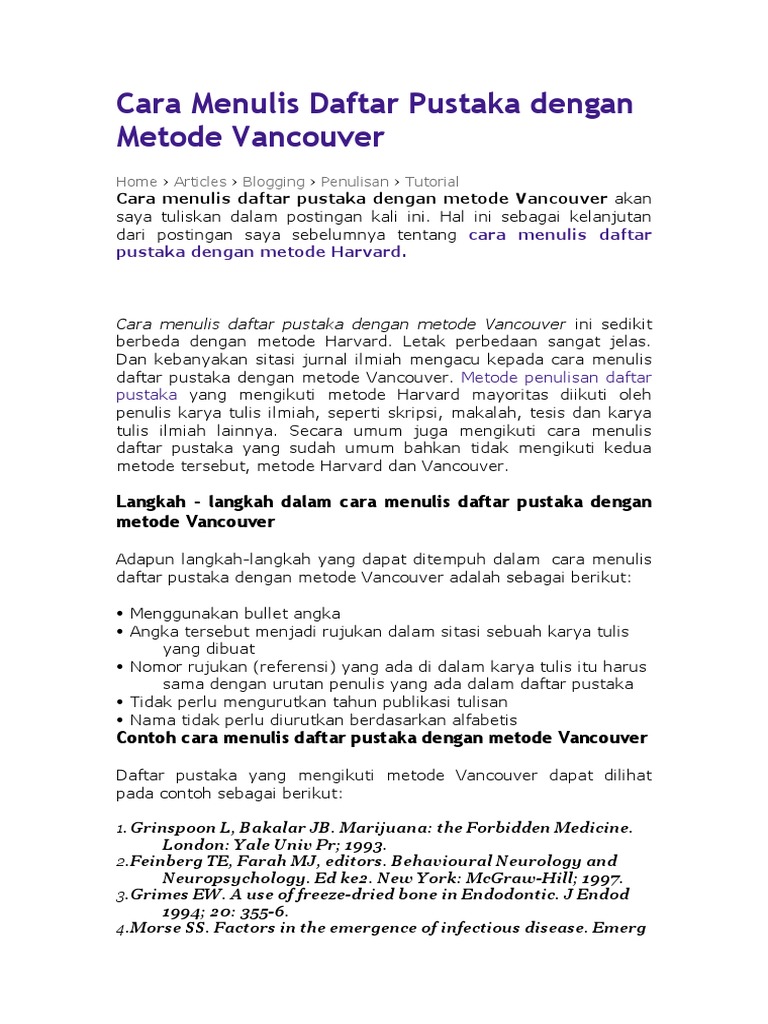 Cara Menulis Daftar Pustaka Dengan Metode Vancouver