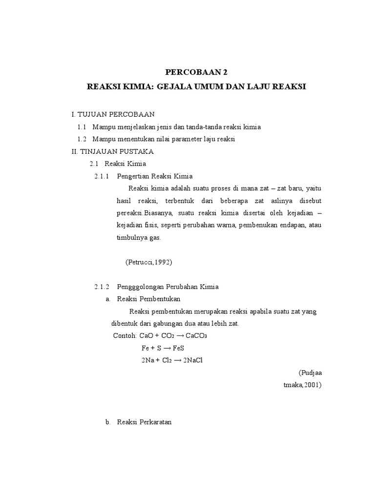 Percobaan Ii Reaksi Kimia Gejala Umum Dan Laju Reaksi Doc