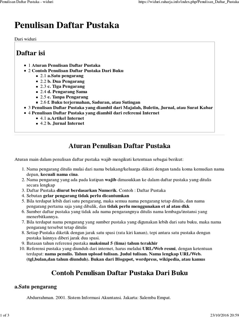 Contoh penulisan daftar pustaka berdasarkan sumbernya. Cara penulisan daftar pustaka dibedakan tiap sumbernya misal dari internet buku jurnal atau yang lainya. Berikut beberapa contoh penulisan daftar pustaka yang sesuai dengan sumber atau rujukan yang digunakan.