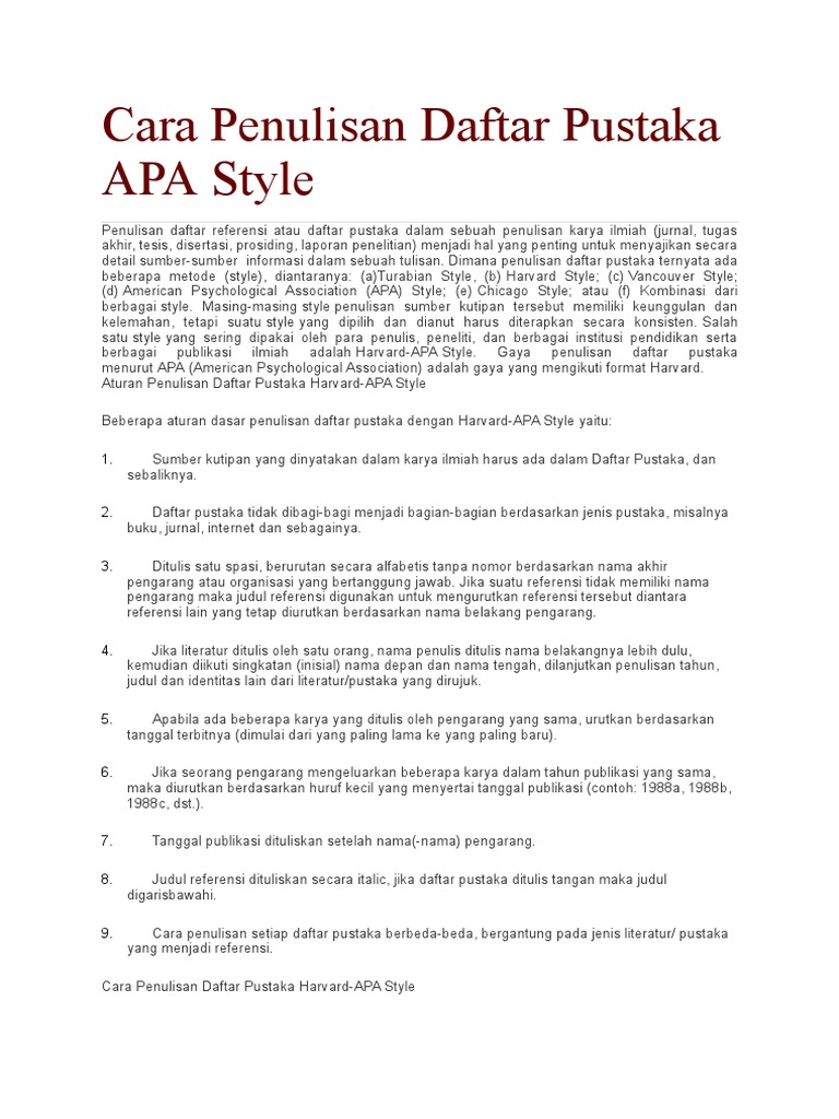 Cara Penulisan Daftar Pustaka Harvard Style Docx