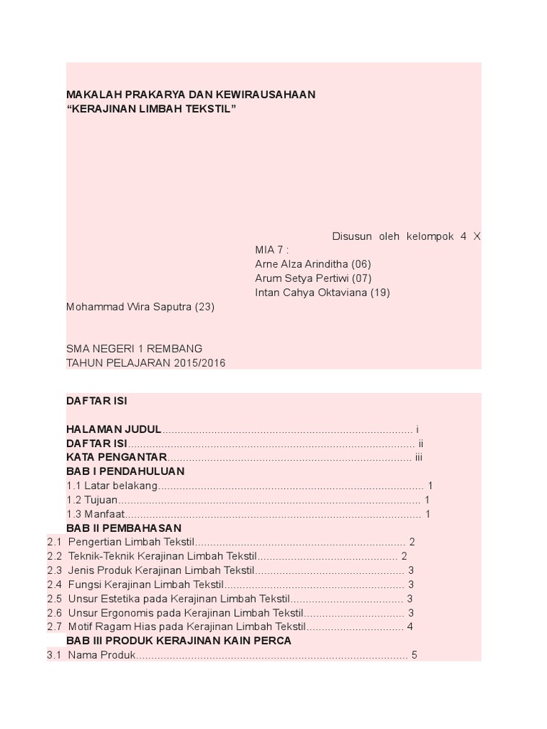 Doc Makalah Kerajinan Wirausaha Tekstil Acep Ridwan Gunawan