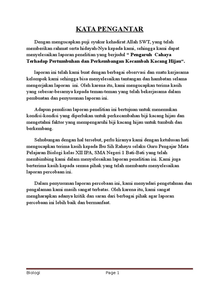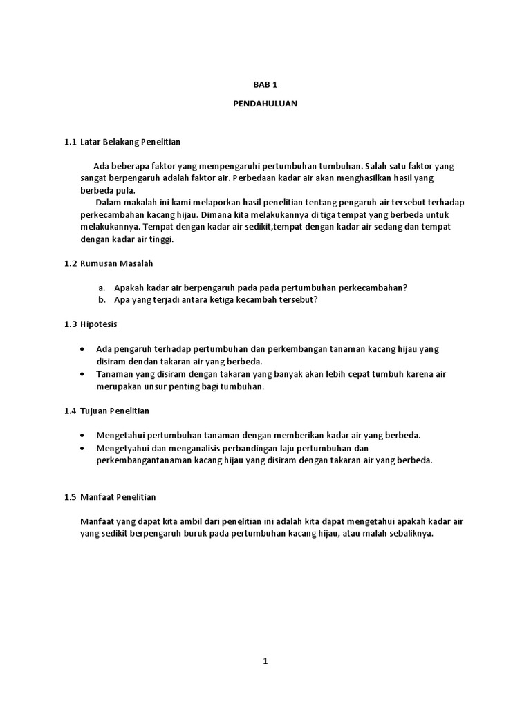 Pengaruh Air Terhadap Pertumbuhan Kacang Hijau Docx