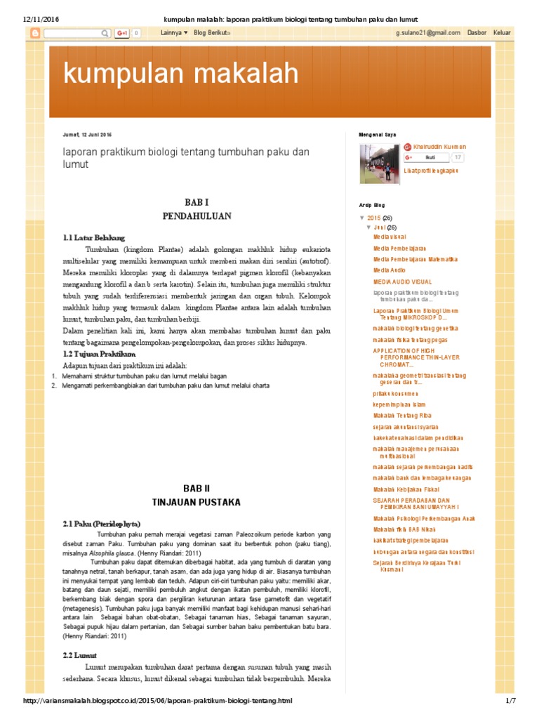 Kumpulan Makalah Laporan Praktikum Biologi Tentang Tumbuhan Paku