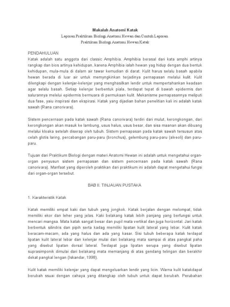 Contoh Makalah Penelitian Biologi Terbaru Kodok Dan Katak