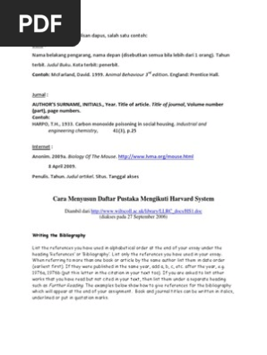 Penulisan Sumber Kutipan Dan Daftar Pustaka Harvard American