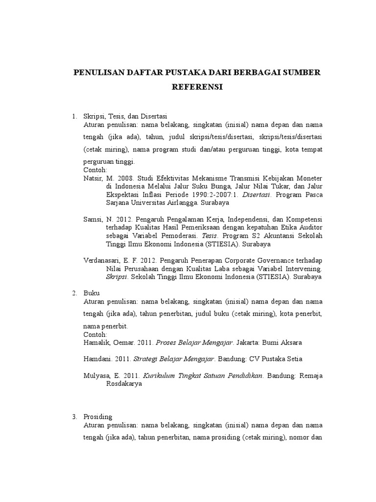 83 contoh penulisan daftar pustaka dari skripsi tesis disertasi.