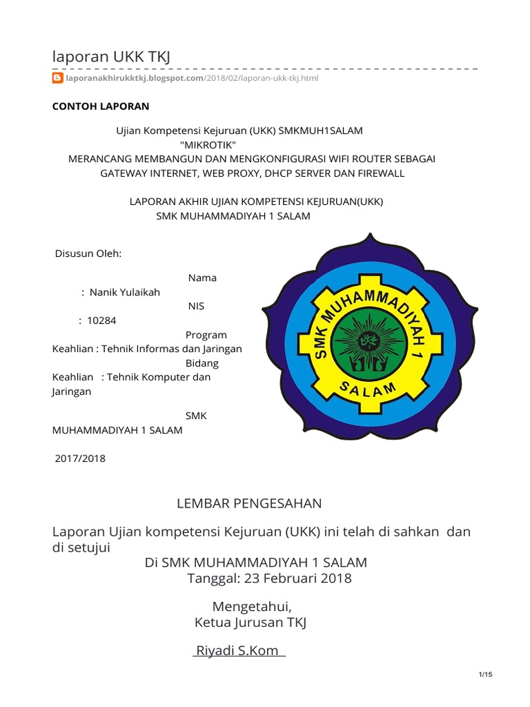 Laporan Anak Smk Tkj Contoh Laporan Ujian Kompetensi Kejuruan