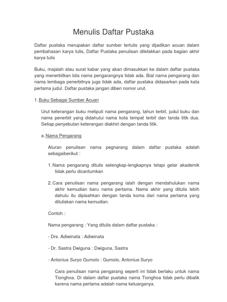 Penulisan Daftar Pustaka Yang Benar Cara Membuat Contoh