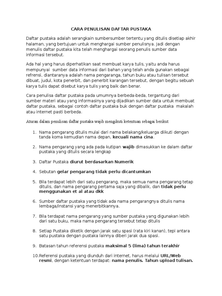Doc Cara Penulisan Daftar Pustaka Sandi Oktavianur Academia Edu